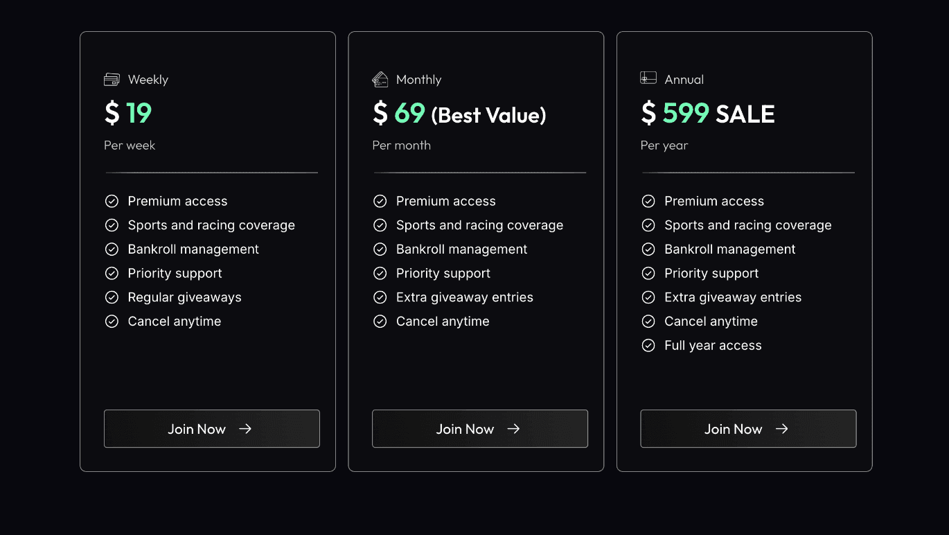 Take the guesswork out of punting. Join hundreds of fellow Aussies turning strategy into profits.